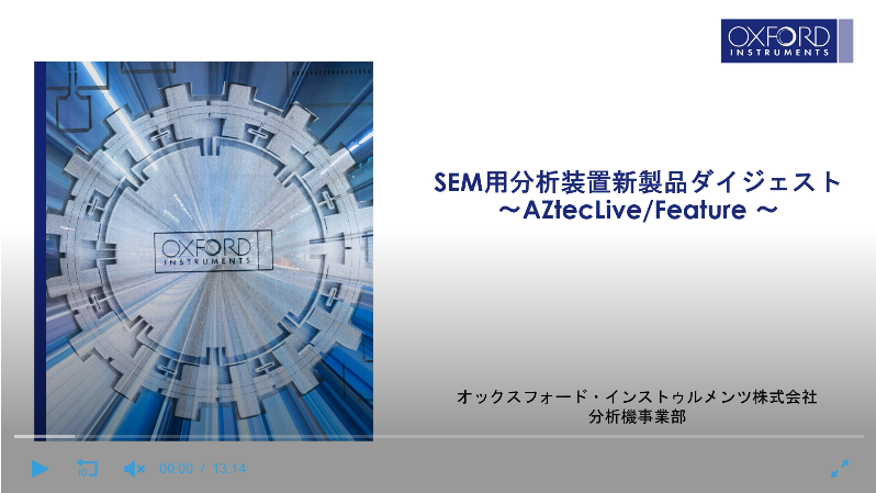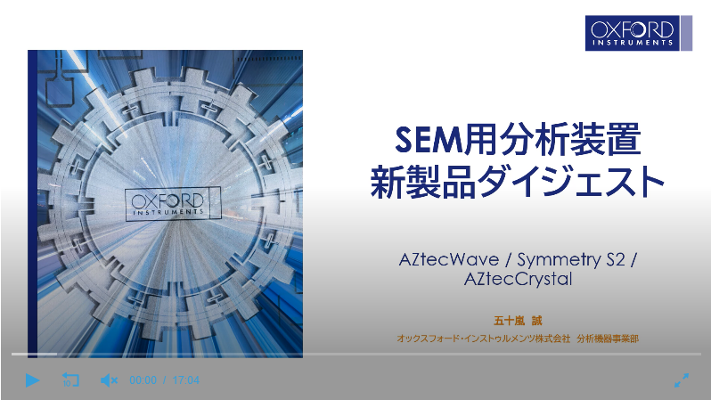 SEMに搭載するWDS、EBSD分析装置の新製品をご紹介します。AZtecWaveはEDSの高速分析にWDSの微量元素定量性能を拡張します。EBSDは分析スピードがさらに向上したSymmetry S2検出器と、新世代のEBSDデータ解析ソフトウェアAZtecCrystalによって、高速かつ正確にEBSD解析が可能です。