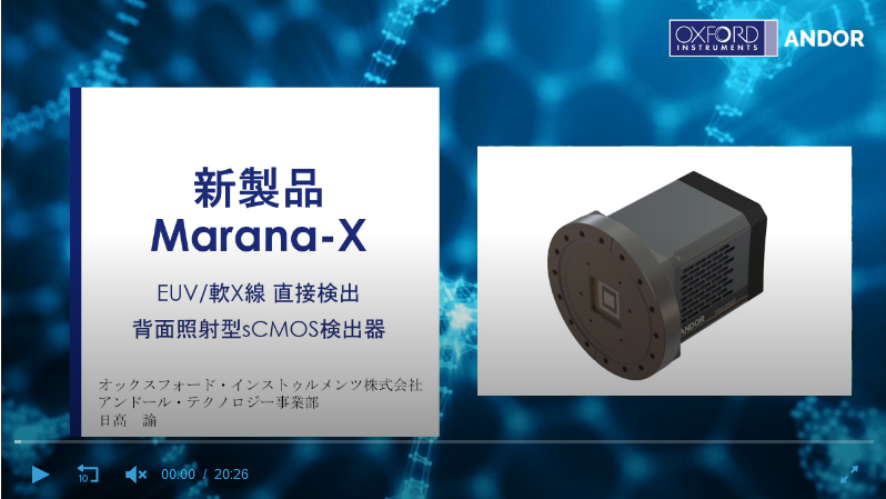 製品詳細/お問い合わせ新製品 高エネルギー検出器 Marana-Xをご紹介いたします。直接検出方式でセンサーとして背面照射型sCMOSを採用しており、高量子効率、高速でのデータ取得が可能です。シンクロトロン、HHG,自由電子レーザー等の高強度ビームラインを使用したEUV・軟X線領域の実験に最適な検出器です。