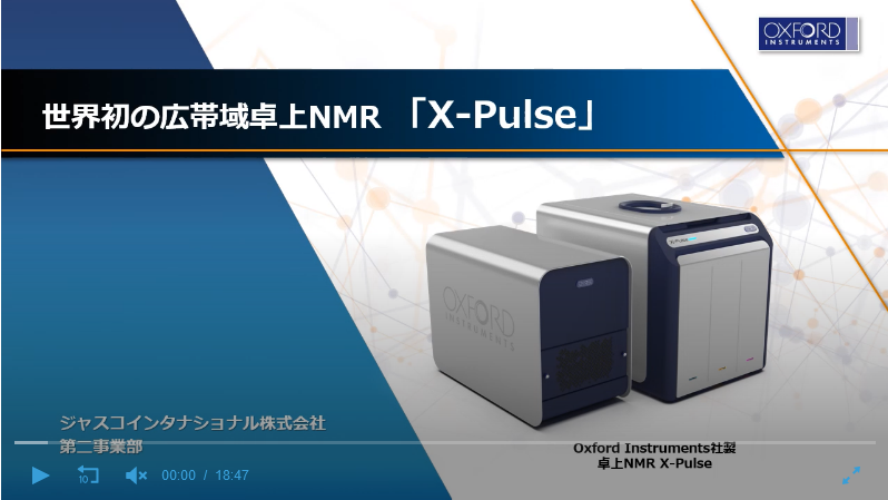 製品詳細/お問い合わせNMRは主に有機化学の分野で普及し、分子構造の決定に使われています。最近では水素や炭素以外の多くの元素(多核)の測定が可能になり、幅広い分野で利用される様になりました。X-Pulseは、高い磁場均一性と温度安定性を備えた永久磁石を使用した冷媒不要の卓上NMRです。本ウェビナーでは、卓上NMRでは世界初となる広帯域多核測定をはじめ、フローセルや温度可変プローブを使った測定等の新機能をご紹介します。