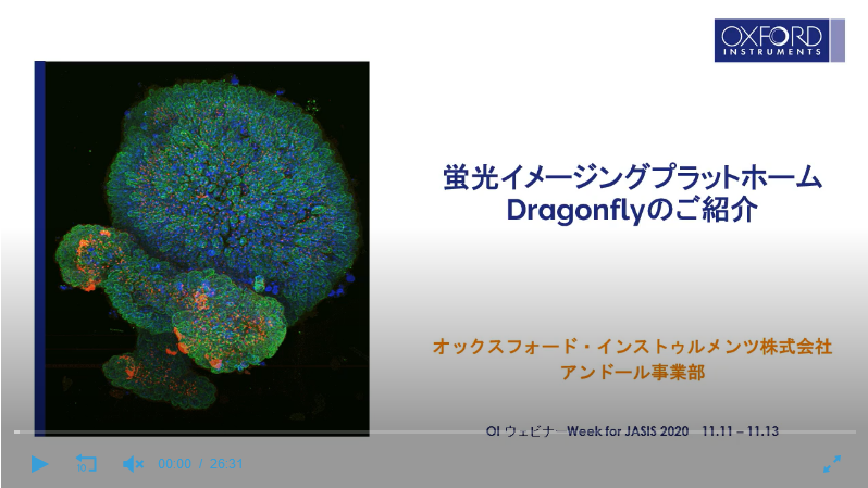 製品詳細/お問い合わせDragonflyはスピニングディスク共焦点システムをベースとした新しいイメージングプラットホームです。1台で共焦点、全反射照明 (TIRF)、Widefieldに対応しており、超解像イメージングも可能です。撮影の速度、感度、分解能の面で優れており、一般的に使用されている共焦点顕微鏡より広範囲(励起:405-785nm)の波長帯に対応しているため、幅広い用途でご使用いただけます。本ウェビナーでは、具体的なアプリケーションを交えながら装置の紹介をさせていただきます。